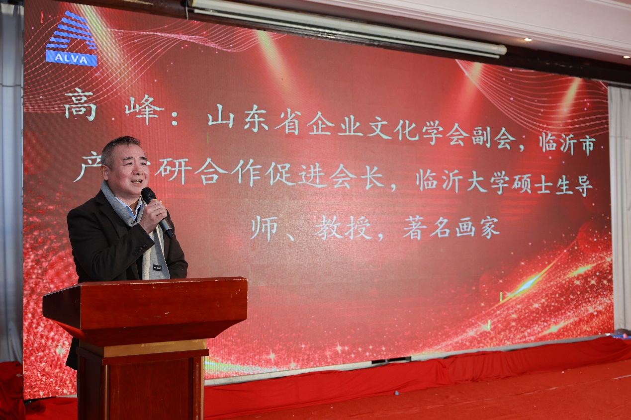 Subsequently, Gao Feng, Vice President of Shandong Provincial Corporate Culture Society, President of Linyi University-Industry-Research Cooperation Promotion Association, Master Tutor and Professor of Linyi University, as well as a renowned painter, took the stage to give a wonderful speech. Professor Gao combined the development trend of the machinery industry with the construction of corporate culture, putting forward valuable suggestions for the high-quality development of Alva Machinery. His profound insights and wonderful sharing left a deep impression on the audience and won rounds of enthusiastic applause.