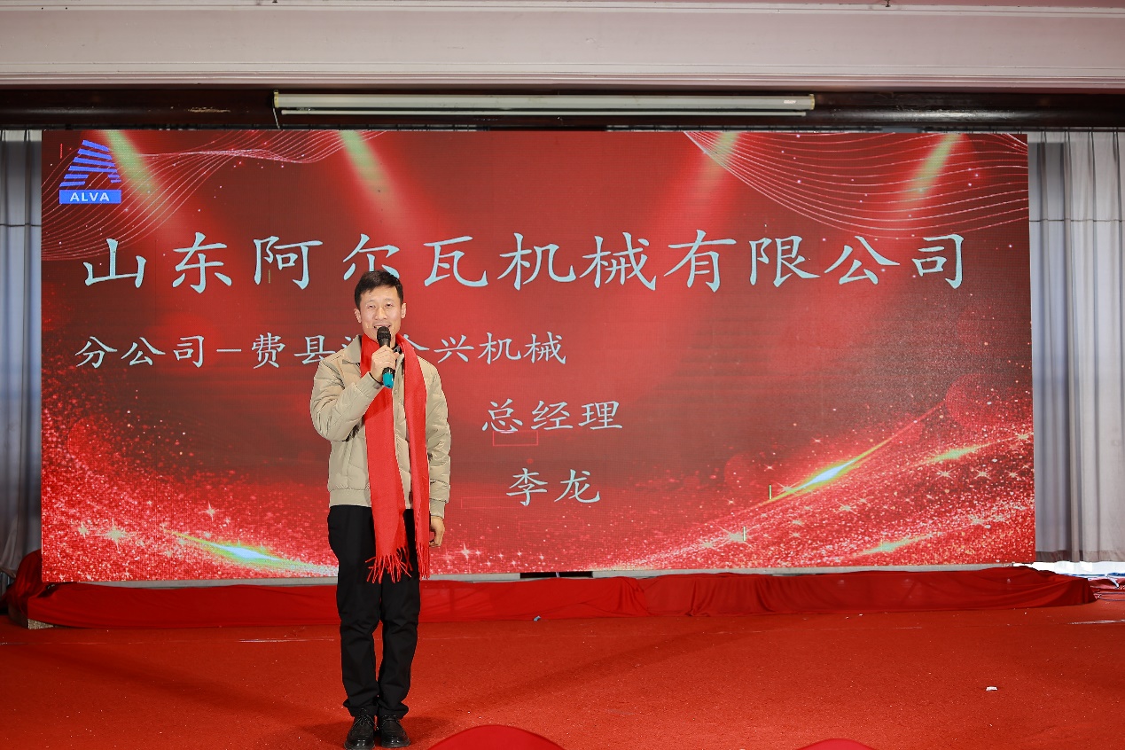 Em seguida, Li Long, gerente geral da Feixian Runquanxing Machinery, filial da Shandong Alva Machinery Group Co., Ltd., fez um discurso no palco. Ele compartilhou os resultados frutíferos do desenvolvimento da filial em 2025 e expressou firme confiança e determinação para andar de mãos dadas com a sede, aproveitar novas oportunidades, enfrentar novos desafios e criar maiores conquistas em 2026. Seu discurso elevou o moral de todos os funcionários e deixou todos cheios de expectativas para o desenvolvimento do novo ano.