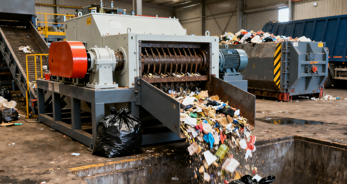 选择适合坚硬岩石和矿物的破碎机;选择双轴撕碎机来处理塑料和纺织品等混合或大件废物。